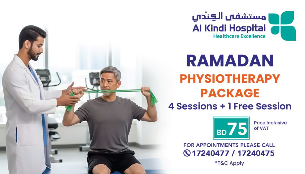 Move better this Ramadan! Book 4 Physiotherapy sessions and get 1 FREE session for only BD 75.